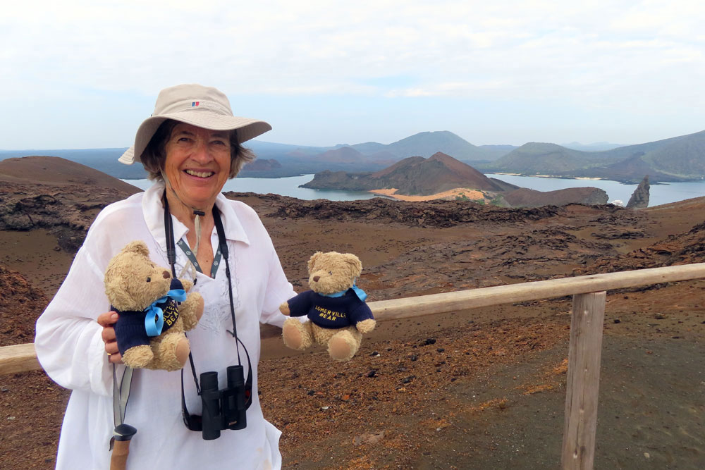 | ..for a last swim before heading back to the ship | You might deduce the firepit is not lit, otherwise scorched bottoms | ..On the harbour on the way home, there were lots of sea lions | We found Charles Darwin at last. Still working on another book |
