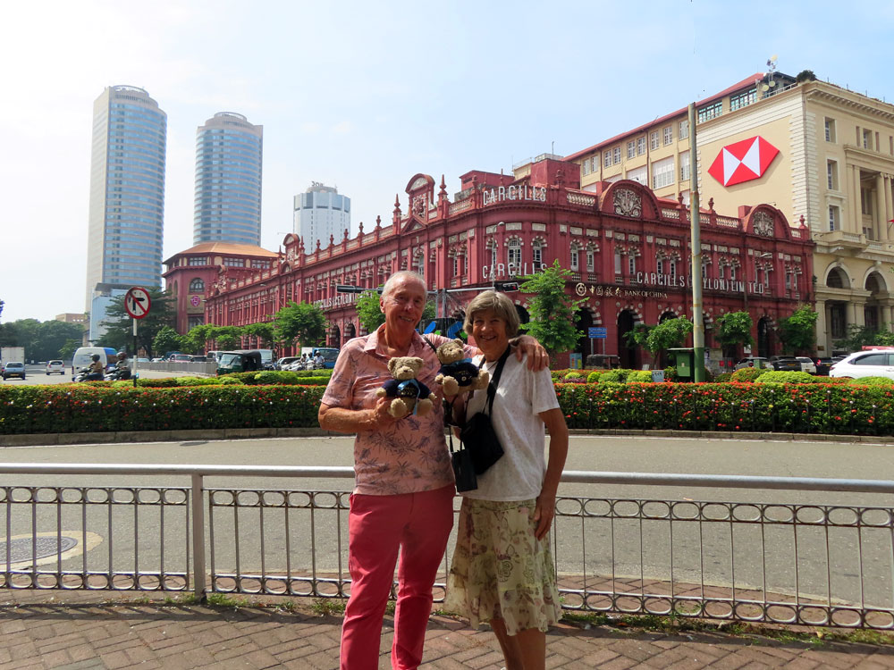 | We met a policeman on the make. Common in Sri Lanka | A lot of old stones. We look at them to humour the padres | This nice lady really liked small bears | We took the padres round down-town Colombo |