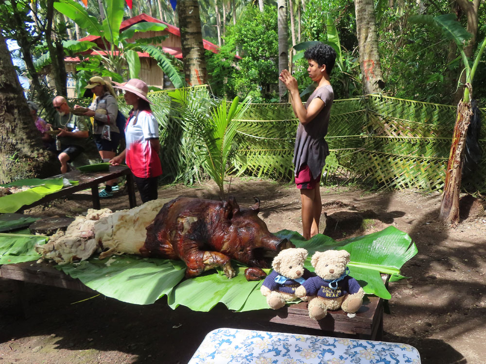 | We saw Tarsiers - cuter even than we are | We got close to driving a police car, but they stopped us | We survived really bad weather | These young ladies bearnapped us, we had to be taken back |