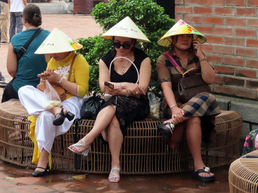 | We made this bonzi tree ourselves | Now we found where the conical hats came from | These nice ladies measured us for bespoke conical hats | Young gentlemen about Vietnam |