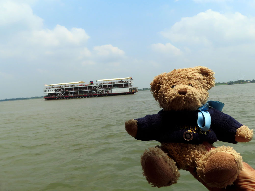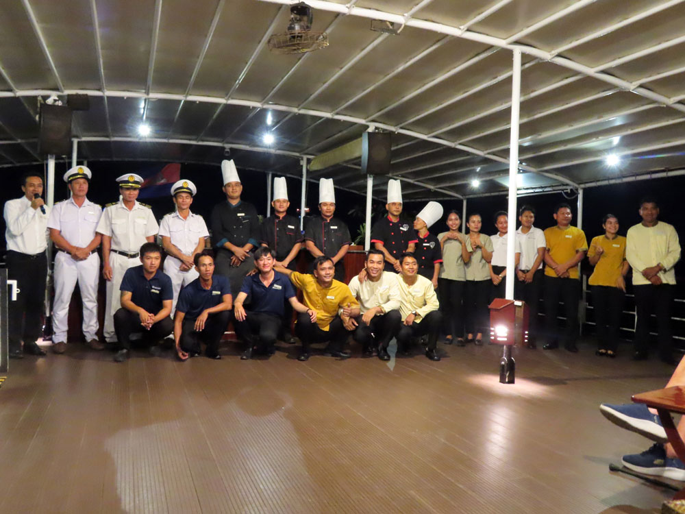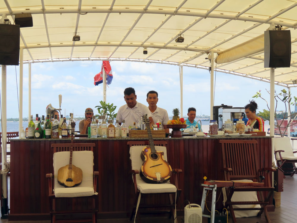 | So we climb aboard the Mekong Pandaw | Straight away we go to check out the captain. He looked .. | ..reasonably competent, but we can never be too sure | The bar staff seemed OK as well |