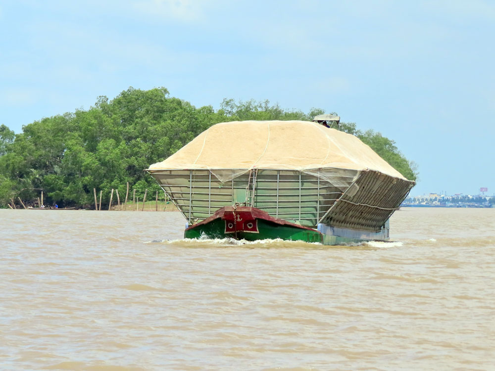 | ..until we reached the end and returned to the ship | Buddhas on the river bank | Rice husks for burning | The artificial canal where accidents are common |