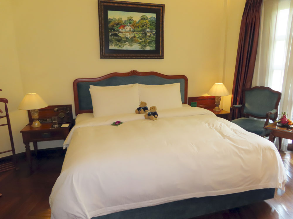 | A suitably plush hotel for the day in Saigon | Sort of place we feel at home | A pool for the madre | And a comfy bed for us |