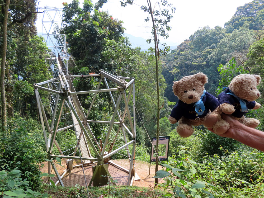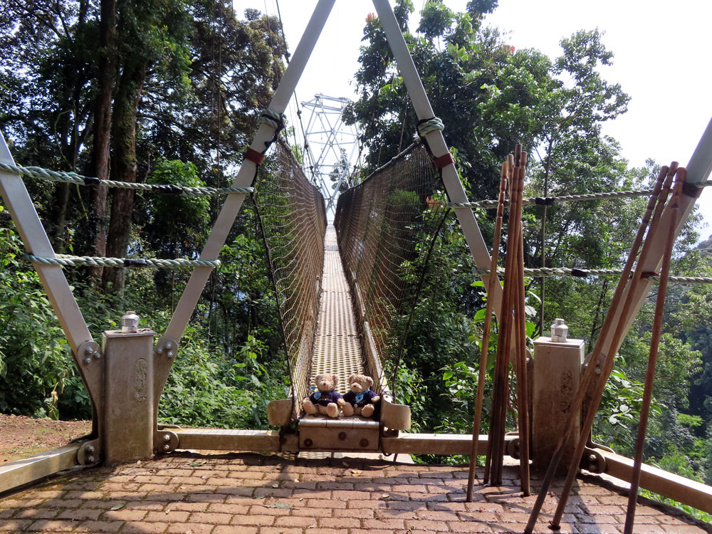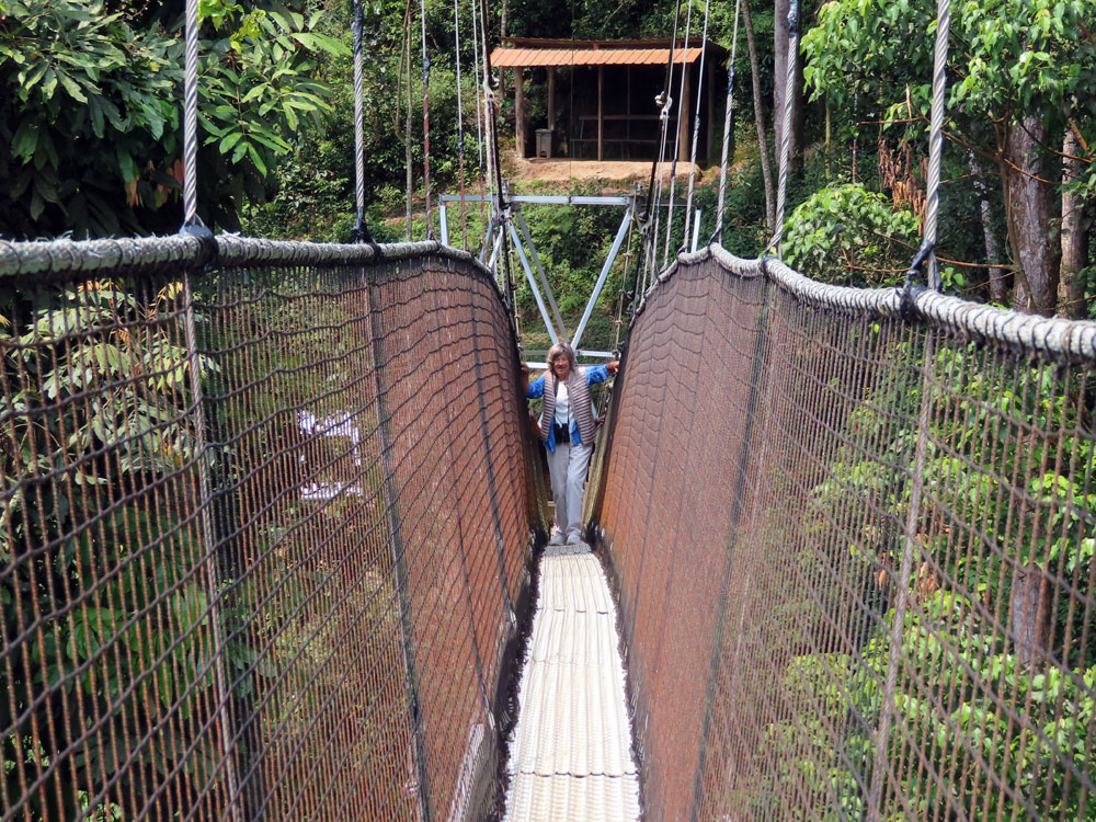 | Then we did trek, it was a trek, to this canopy walkway. | The madre was a bit frit, and we had to encourage her . She managed in the end | And this is the nice man who guided us there |