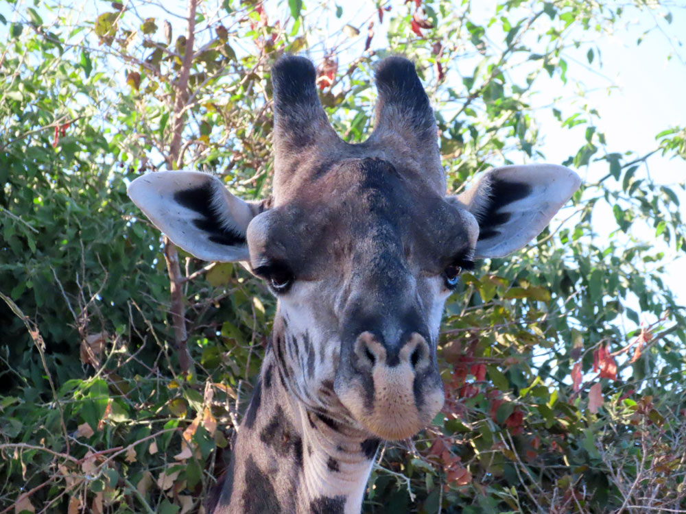 | The giraffes were bigger than we were | ..and have a sort of hang dog expression | and we tracked the lions from their footprints in the sand |